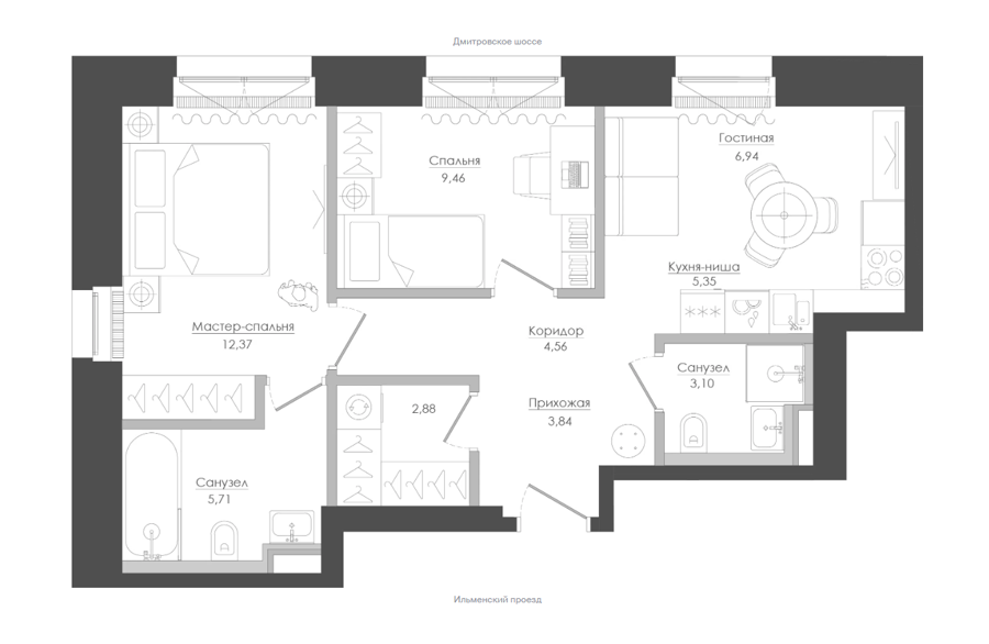 На расстоянии не более одного километра от ЖК представлены обширные зеленые зоны, включая парк Лихоборка и парк имени Федорова