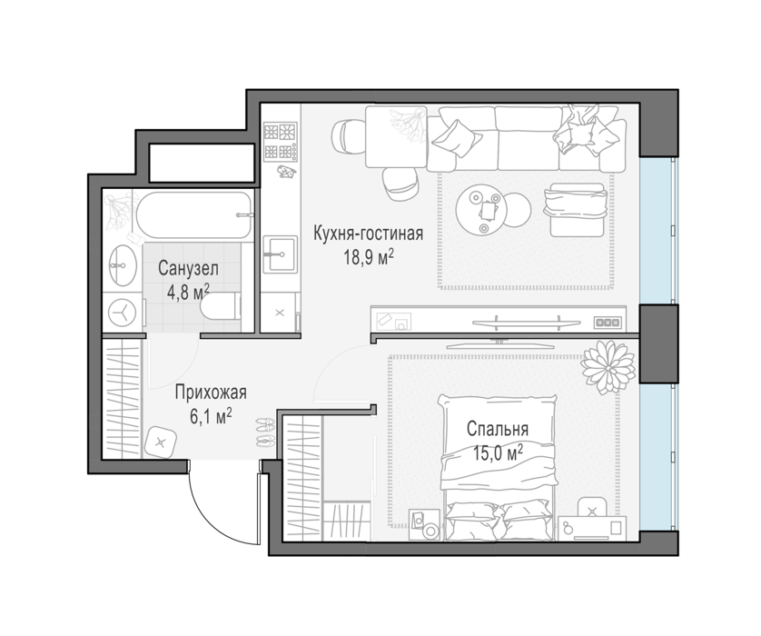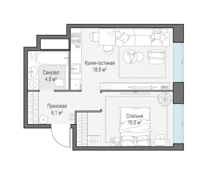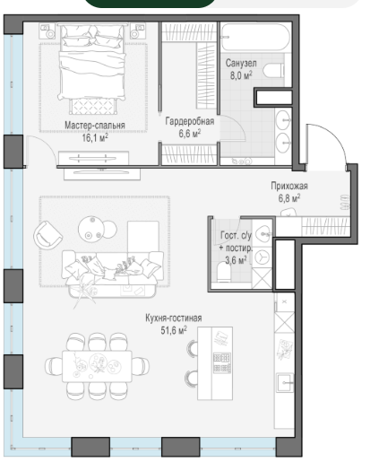Площадь от 44 м2