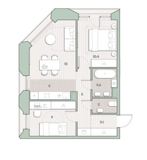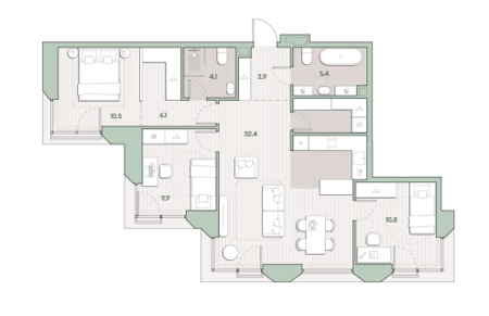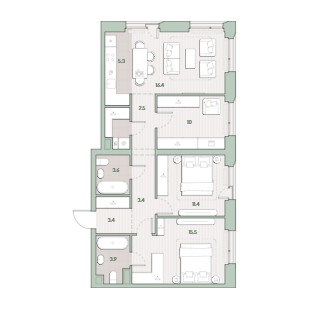 Площадь от 61.6 м2