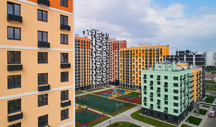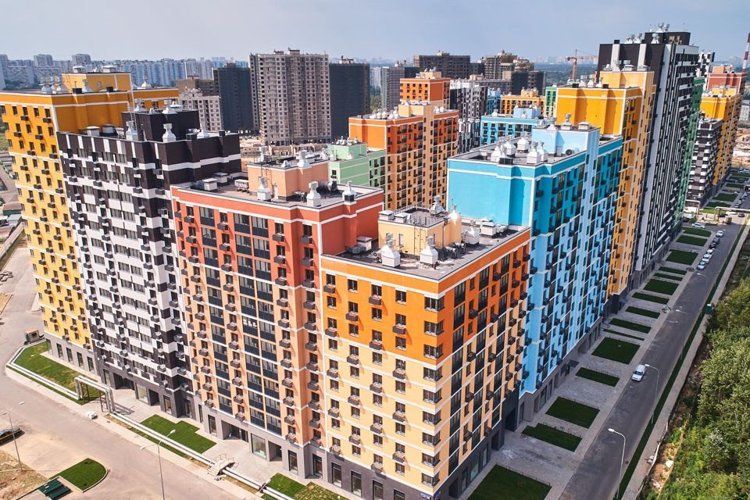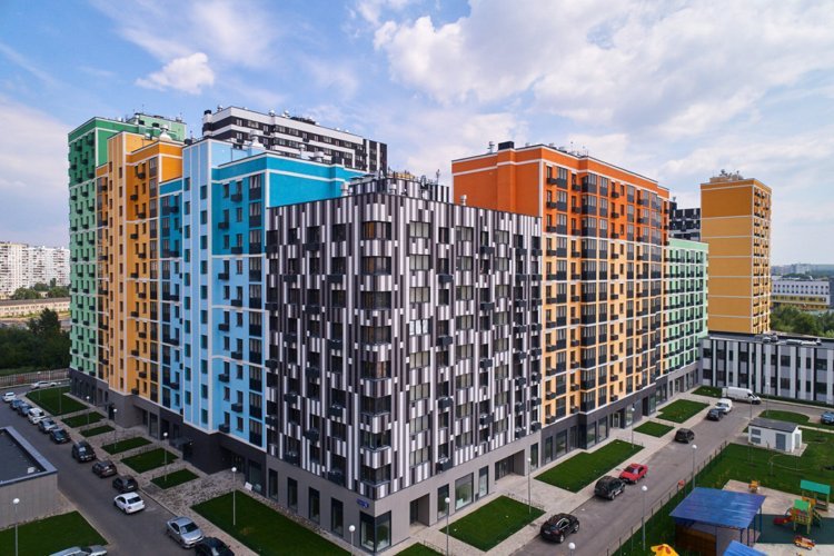 ЖК «Лучи» — это яркий дизайн фасадов с причудливыми геометрическими узорами и декоративными элементами. Цветовая гамма очень насыщенная, в ней присутствует много ярких оттенков — желтый, красный, зеленый, синий. При этом они не режут глаз, а органично сочетаются друг с другом. С учетом погодных условий большей части года в Московском регионе яркое цветовое решение выигрышно выделяет проект среди однотипных домов.
