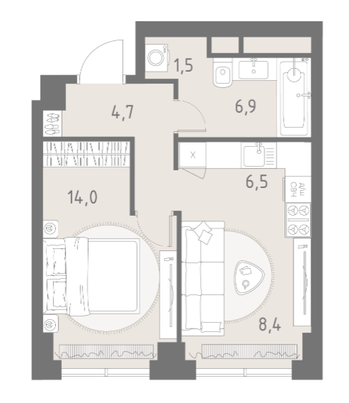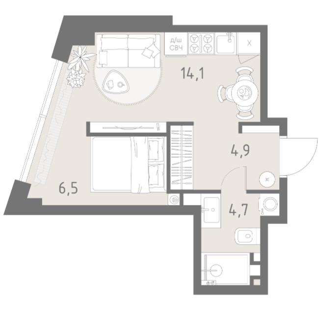 Площадь от 42 м2
