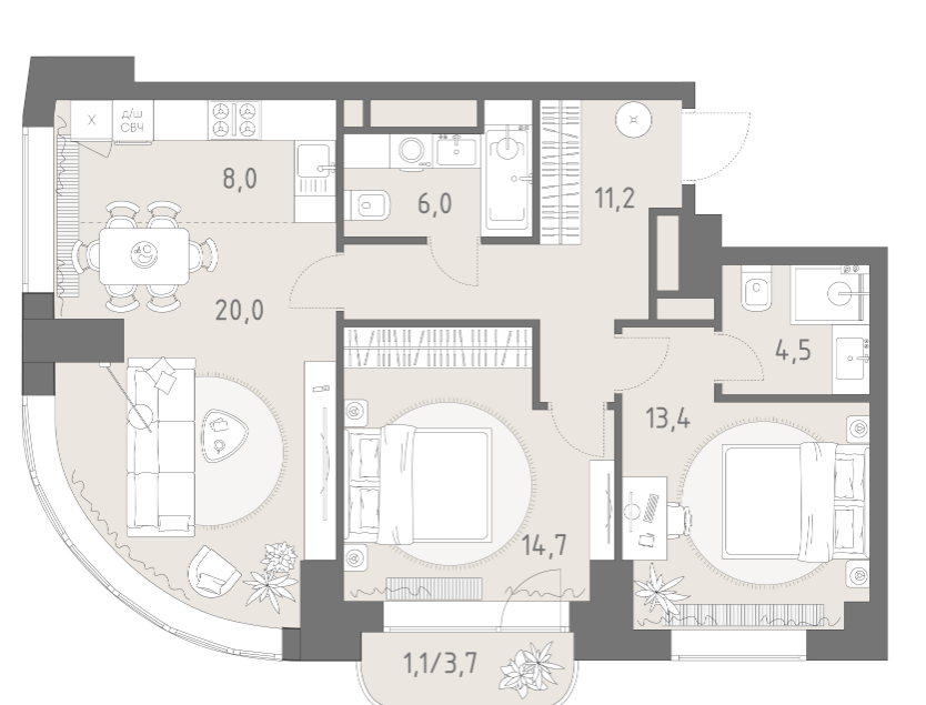 Площадь от 93.7 м2