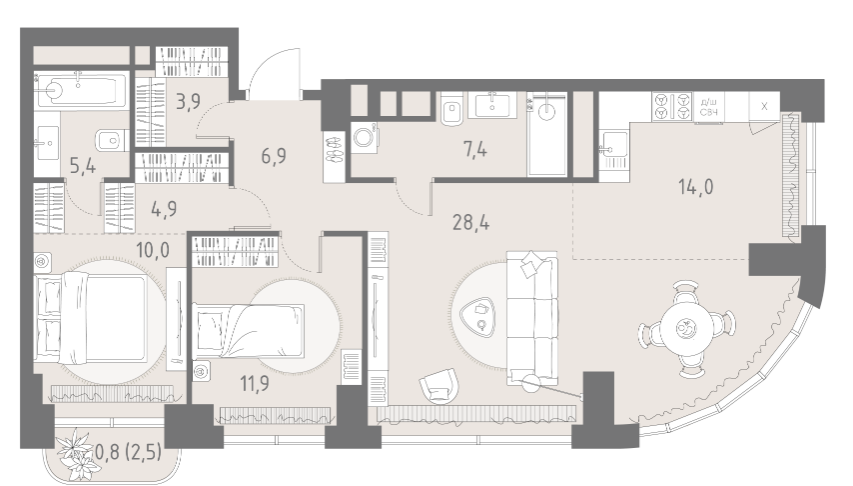 Площадь от 78.9 м2