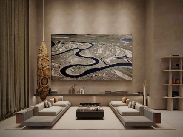 Баланс, симметрия и гармония нашли отражение в органической форме зданий. Плавность, элегантность и лаконичность прослеживаются в каждом элементе: от теплых и натуральных цветов фасадов до обтекаемой геометрии балконов, повторяющих изгибы протекающей рядом реки Сетунь.