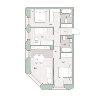 концепции сухих ног: из квартиры можно попасть в кафе на первом этаже, выйти в коворкинг, забрать доставку, получить письмо, встретиться с соседями. Панорамные окна и стеклянные двери наполняют пространство воздухом и светом, делая его еще более эстетичным и приятным для времяпрепровождения.